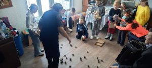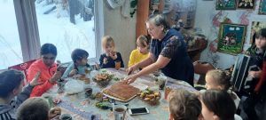Наигравшись дети отведали вкусный домашний торт с горячим чаем и сладостями.Чаепитие сопровождалось душевною беседой.